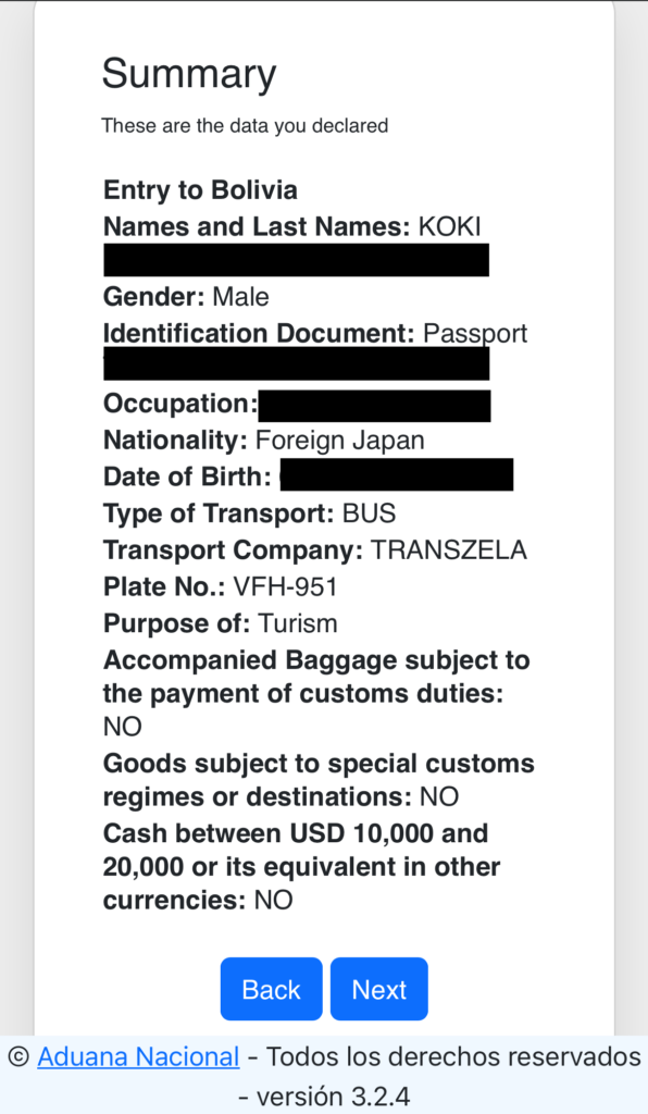 • ボリビア入国:国境前にバス車内でオンライン登録の案内あり