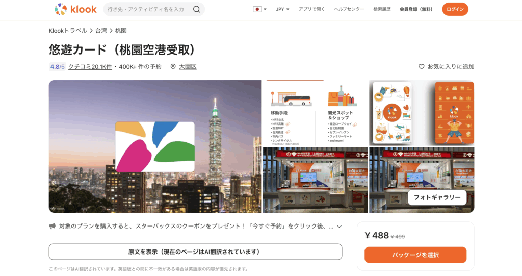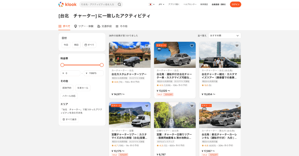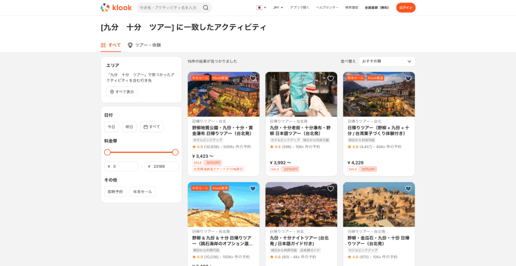 ▷ Klook|台北近郊の観光ツアーやチケットを確認する
